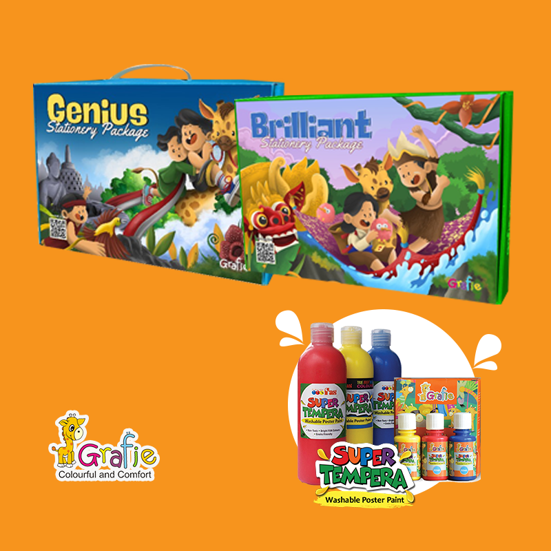 • Anak berkreasi menggambar menggunakan salah satu produk alat tulis Grafie.